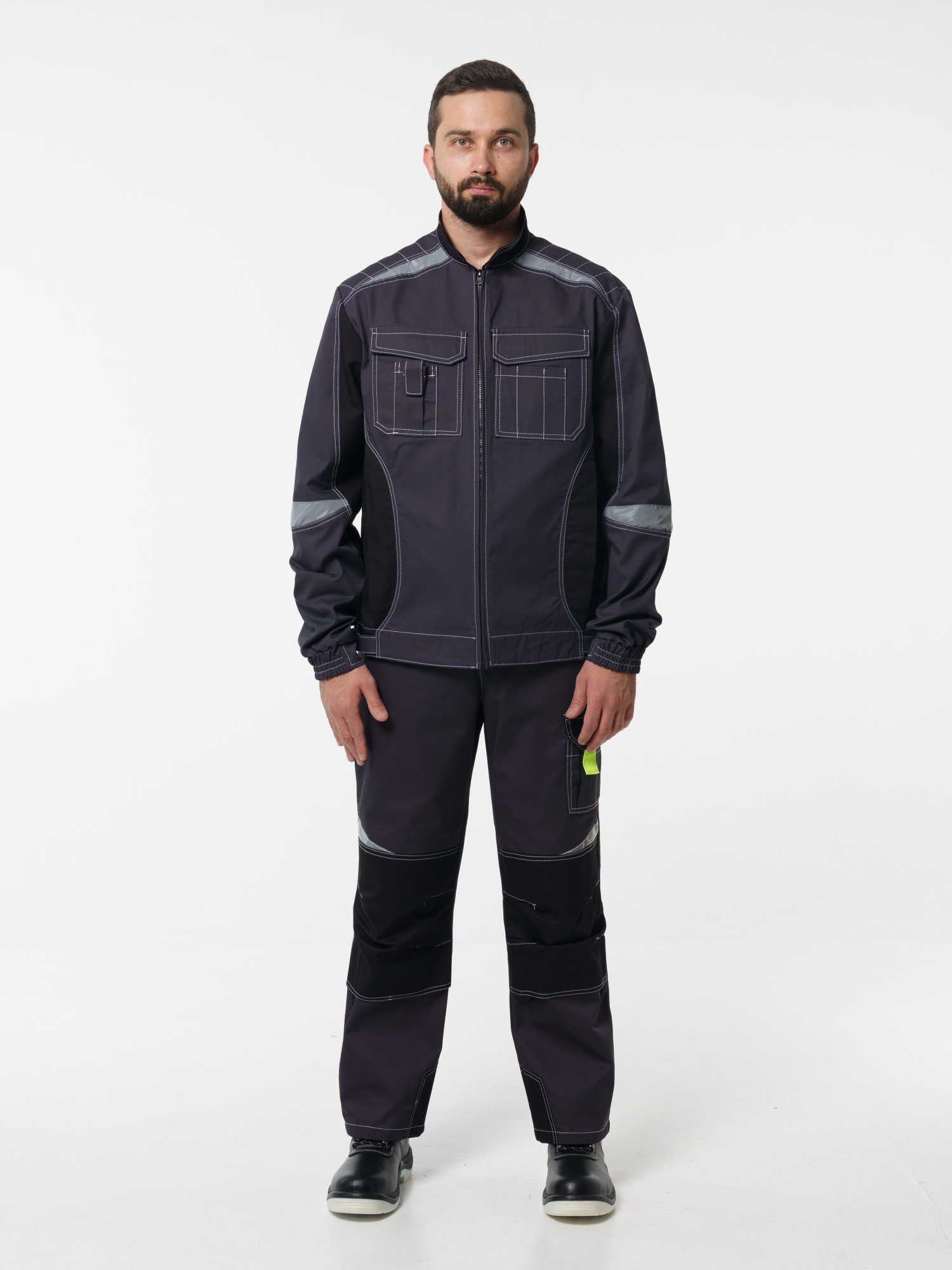 Брюки мужские Фаворит-Мега №116 серый, черный, лимонный, СОП Тк. Протект (ЧЗ) (112-116/158-164)