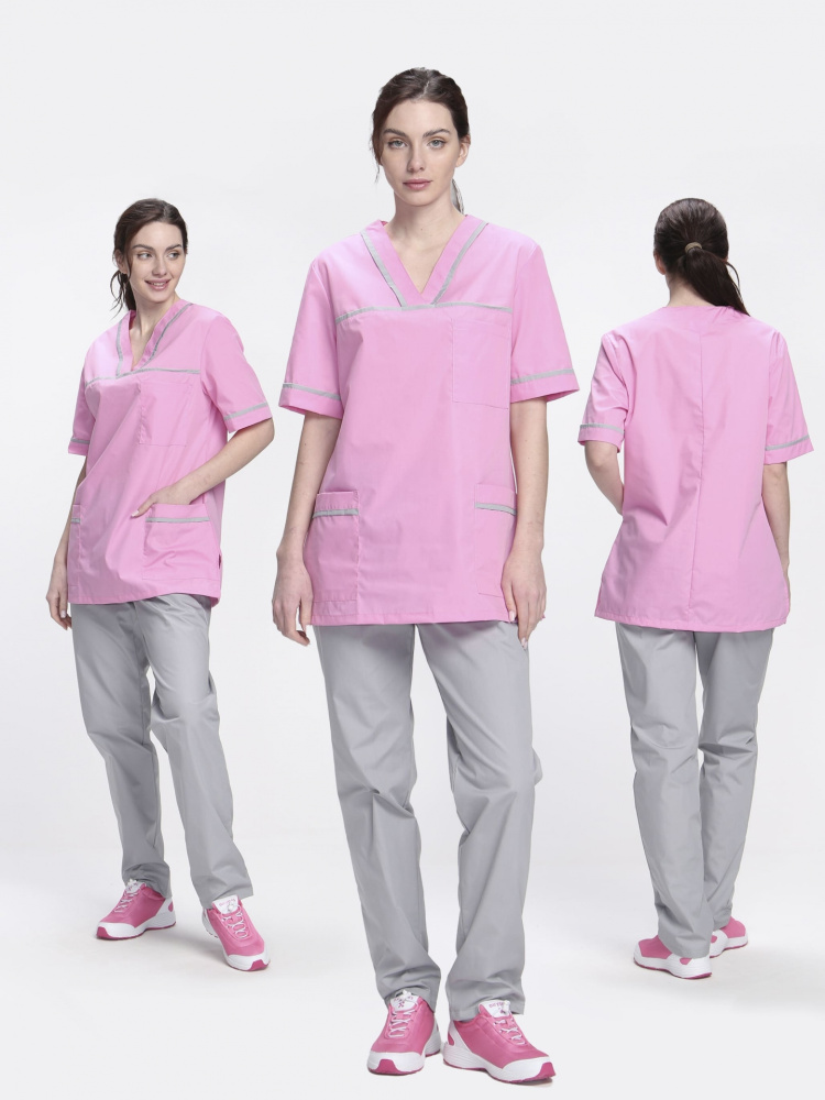 Стильный женский медицинский костюм «Ирис» разработан для сотрудниц медицинских учреждений, салонов красоты, массажных кабинетов или стоматологий. Костюм медицинский женский состоит из двух предметов: блузка + брюки женские. Спецодежда изготовлена в соответствии с ГОСТ, надежно защищает от общих производственных загрязнений. Костюм выполнен в нежных пудровых оттенках, замечательно сидит по фигуре. Прямая удлиненная блуза не стесняет движения, комфортна в работе. Для хранения мелочей предусмотрены вместительные карманы: боковые и нагрудный. Декоративный кант на карманах, горловине и кокетке придает костюму изысканный внешний вид. Рабочие брюки оснащены поясом из эластичной тесьмы для комфортной работы в течение длительного периода времени. Костюм изготовлен из легкой дышащей ткани, которая не выцветает и не садится после многократных стирок.