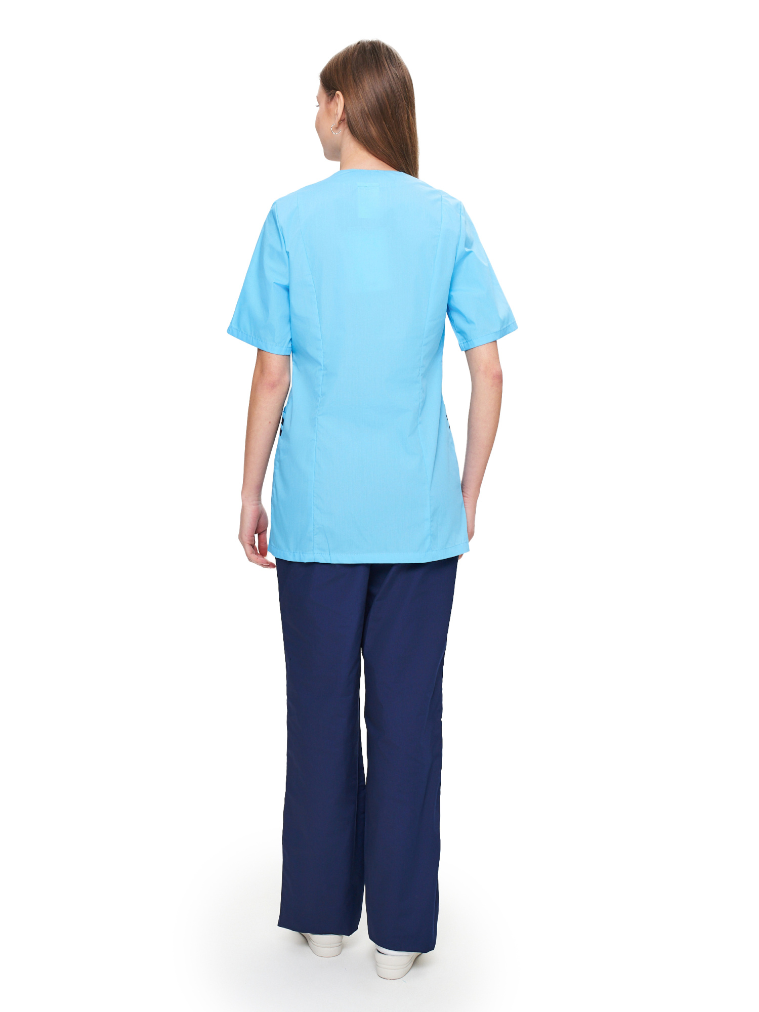 Современный удобный женский костюм со свободной посадкой, рекомендован для сферы обслуживания, клининга, гостиничного бизнеса (HORECA) из высококачественной смесовой ткани убережет от загрязнений и послужит отличным помощником в решении задач любой сложности. Костюм для горничных и уборщиц прост в уходе, не мнется и быстро сохнет, а материал долгое время сохранит свой первоначальный яркий цвет. Костюм состоит из блузы светло-голубого цвета и брюк темно-синего цвета. Спецодежда для горничных является особенным видом профессиональной униформы. Она создана для сферы обслуживания, работники которой всегда должны выглядеть безупречно. Одежда для горничных строго регламентируется администрацией гостиницы или отеля, поэтому ее состоянию уделяется большое внимание. Костюм состоит из прочной смесовой ткани ТИСИ, отталкивающей различного рода загрязнения. Материал устойчив к пятнам и истиранию, тем самым уборщицы всегда будут выглядеть опрятно и привлекательно.