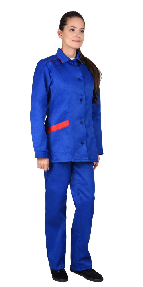 Костюм "ЗОЛУШКА" женский: куртка, брюки васильковый с красным кантом (ЧЗ) (112-116/158-164)