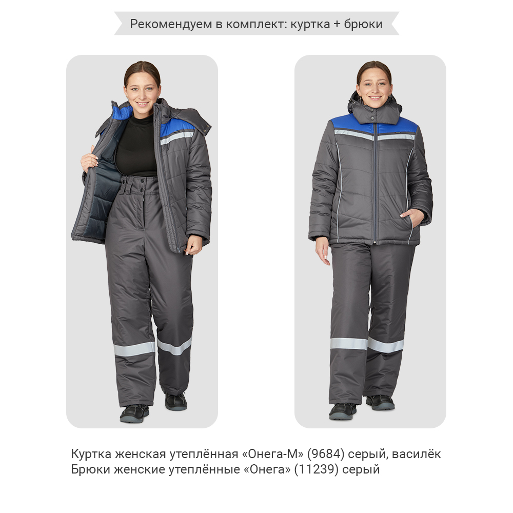 Куртка женская утеплённая "Онега-М" с трехслойным утеплителем тёмно-серая/электрик (ЧЗ) ПРАБО (120-124/170-176)