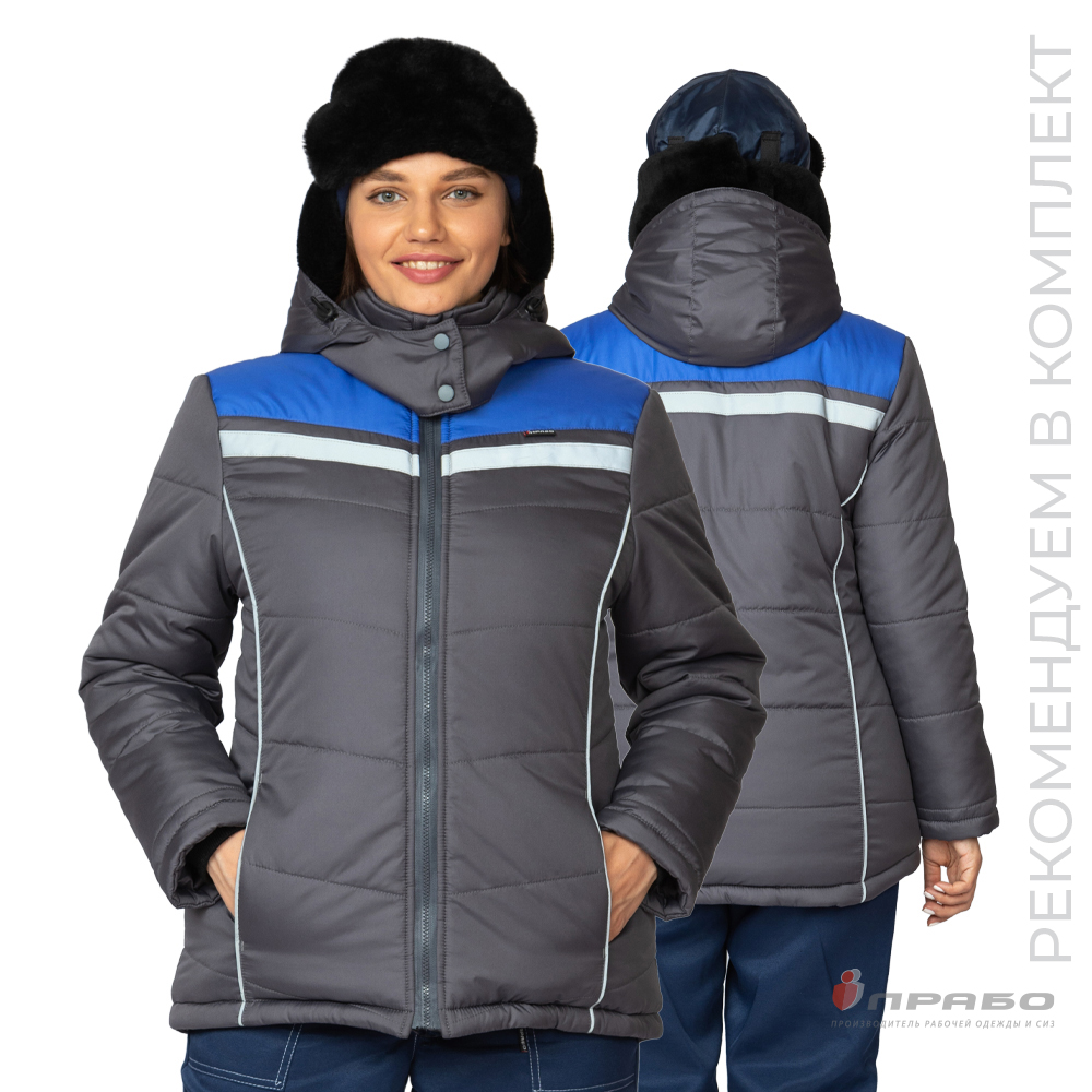 Куртка женская утеплённая "Онега-М" с трехслойным утеплителем тёмно-серая/электрик (ЧЗ) ПРАБО (112-116/170-176)