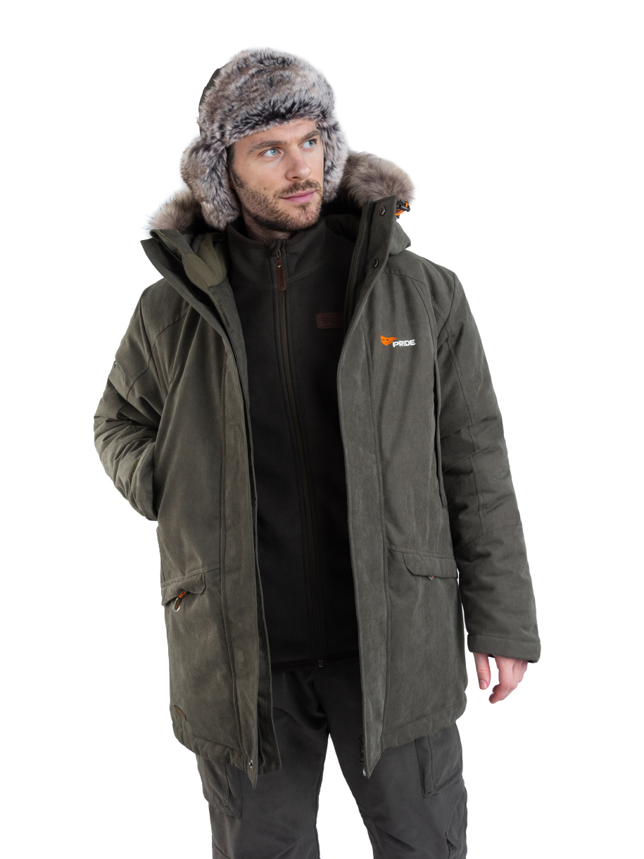 Универсальный функционал и современный дизайн позволяют носить куртку как на охоте, так и в городе. Мембранная ткань Исландия обеспечивает надежную защиту от ветра и мокрого снега. Помимо защиты от осадков, материал обладает высокой прочностью и практически бесшумен. Удлиненный крой, утяжка по талии, регулируемый капюшон с отделкой из натурального меха обеспечивают удобство и комфорт даже при температуре —35 С°.